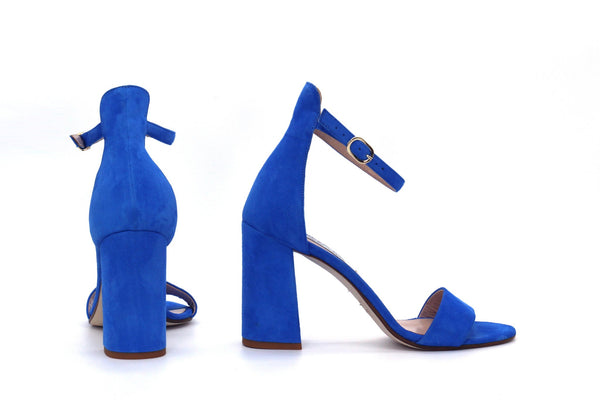 Italian Handmade Blue Suede or Black Saffiano Leather Ankle Strap Sandals.